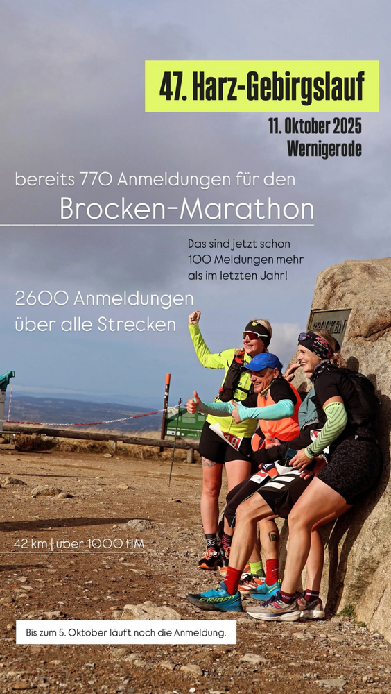 Bereits 770 Anmeldungen können wir für den Brocken-Marathon verzeichnen. Das sind jetzt schon 100 Meldungen mehr als für den letztjährigen Lauf.